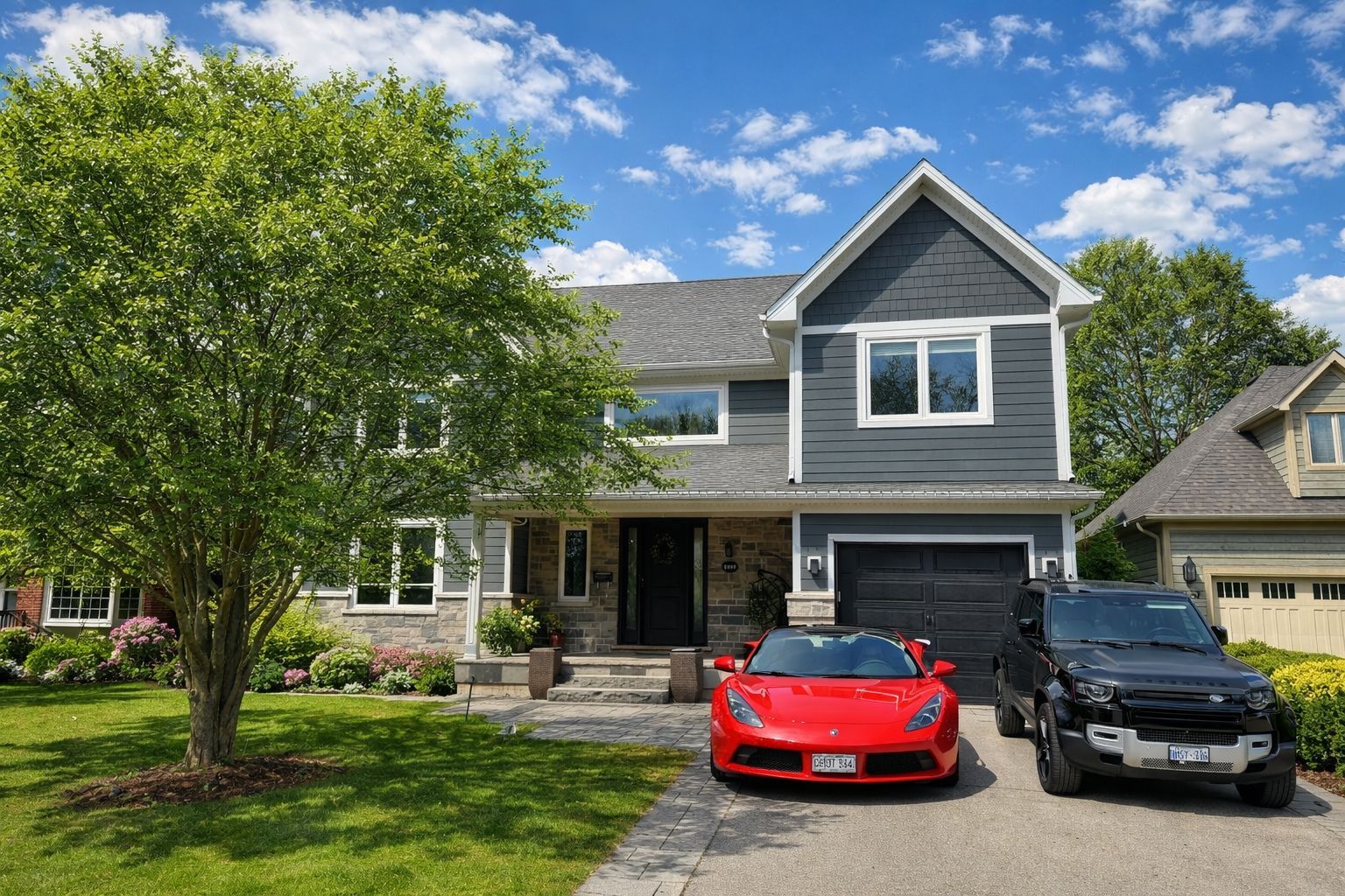 Custom built in 2018 and nestled in one of Burlington's most desired neighbourhoods, 2163 Deyncourt Drive offers a seamless blend of luxury, comfort, and modern living. Situated on a premium 60' x 142' north-west facing lot on a quiet street in Central Burlington, this home is designed for both everyday living and effortless entertaining. The main level showcases a living room with soaring cathedral ceiling, a dramatic gas fireplace, and a French door walkout to the deck, creating a bright and inviting atmosphere. The gourmet kitchen is a true centrepiece, complete with quartz countertops, designer backsplash, premium stainless steel appliances, and an oversized 8' island with breakfast bar, flowing seamlessly into the dining area. A dedicated main floor office provides the perfect space for working from home. Upstairs, the private primary retreat offers a luxurious escape with a walk-in closet, two-sided gas fireplace, and a spa-inspired five-piece ensuite featuring a skylight, double sinks, freestanding tub, steam shower, and heated floor. Two additional bedrooms, a family room, beautifully appointed five-piece main bathroom, and a convenient laundry room complete the upper level. The finished basement extends the living space with a recreation area, fourth bedroom, laminate flooring, and a three-piece bathroom - ideal for guests or extended family. Step outside to your private backyard oasis, featuring a custom deck with hot tub and an interlock patio, perfect for relaxing or entertaining. Additional highlights include expansive windows that flood the home with natural light, engineered hardwood flooring throughout the main and upper levels, multiple walkouts, and a full irrigation system. Ideally located close to Burlington's vibrant downtown core, Spencer Smith Park, the lake, major highways, and the GO Train, this exceptional home delivers the perfect balance of luxury, convenience, and lifestyle. (certain images have been digitally enhanced)